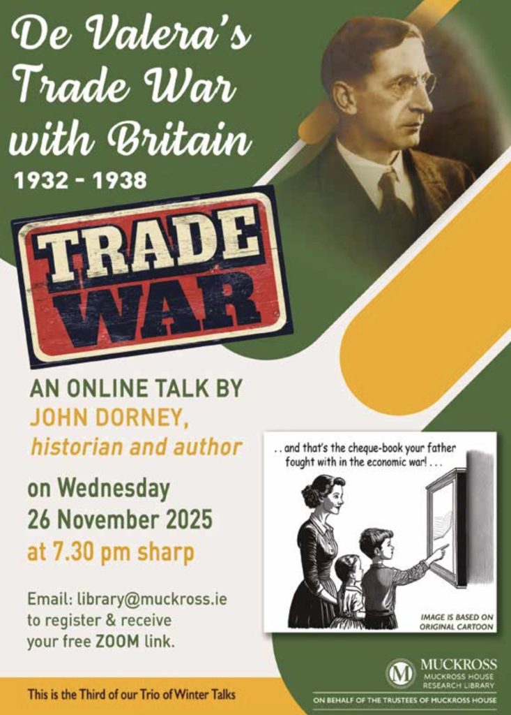 Email library@muckross.ie to receive a free Zoom link to any or all of these three great talks… starting Wednesday, November 5!